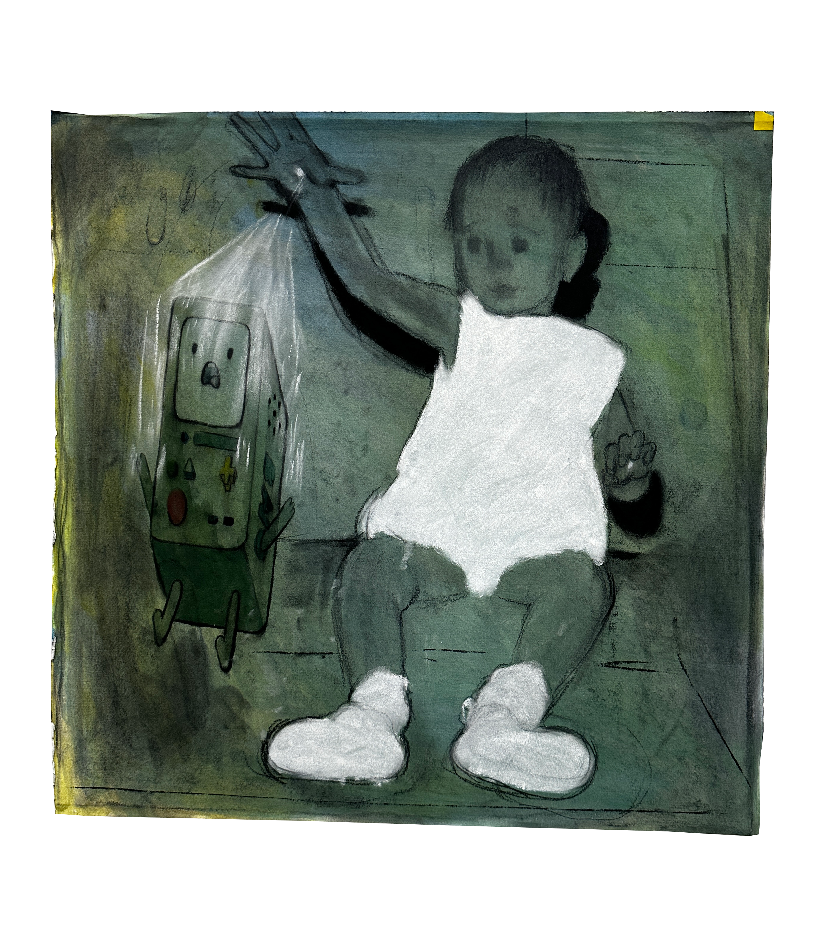 A Little DreamCharcoal, acrylic, watercolor, and white charcoal on paper mounted on MDF